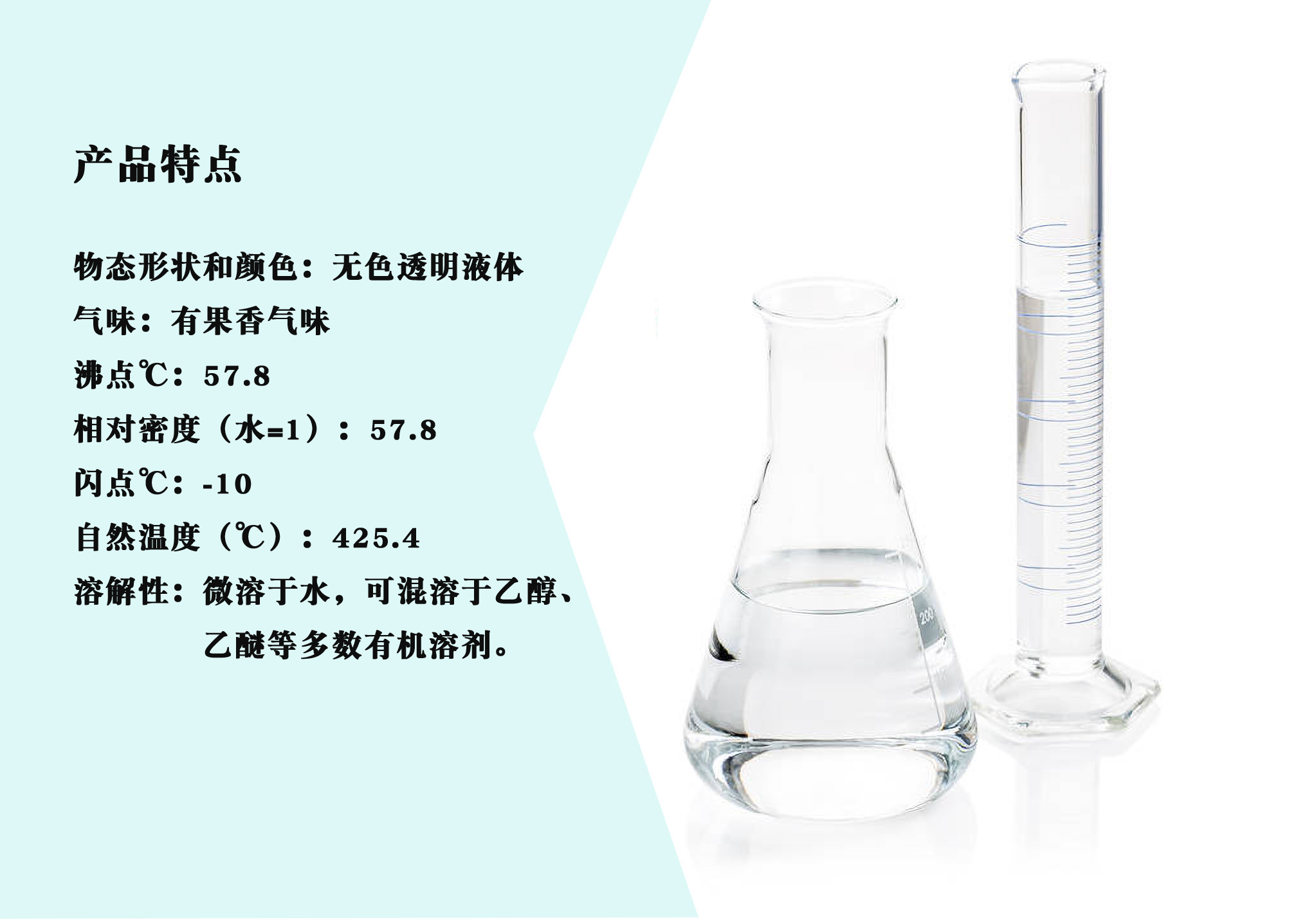 乙酯又名乙基酯,是一类由乙醇和酸缩合酯化得到的产物,通常乙酯是指羧酸酯类,通式为RCOOEt。常见的乙酯有甲酸乙酯,乙酸乙酯。低毒性,有甜味,浓度较高时有刺激性气味,易挥发,是一种用途广泛的精细化工产品。乙酸乙酯具有优异的溶解性、快干性,用途厂泛,而呈酸性。乙酸乙酯溶水,能与氯仿、乙醇、丙酮和乙醚混溶;能溶解某些金属盐类如氯化锌、氯化铁等反应。是一种重要的有机化工原料和工业溶剂。乙酸乙酯对空气敏感,吸收水分缓慢水解。