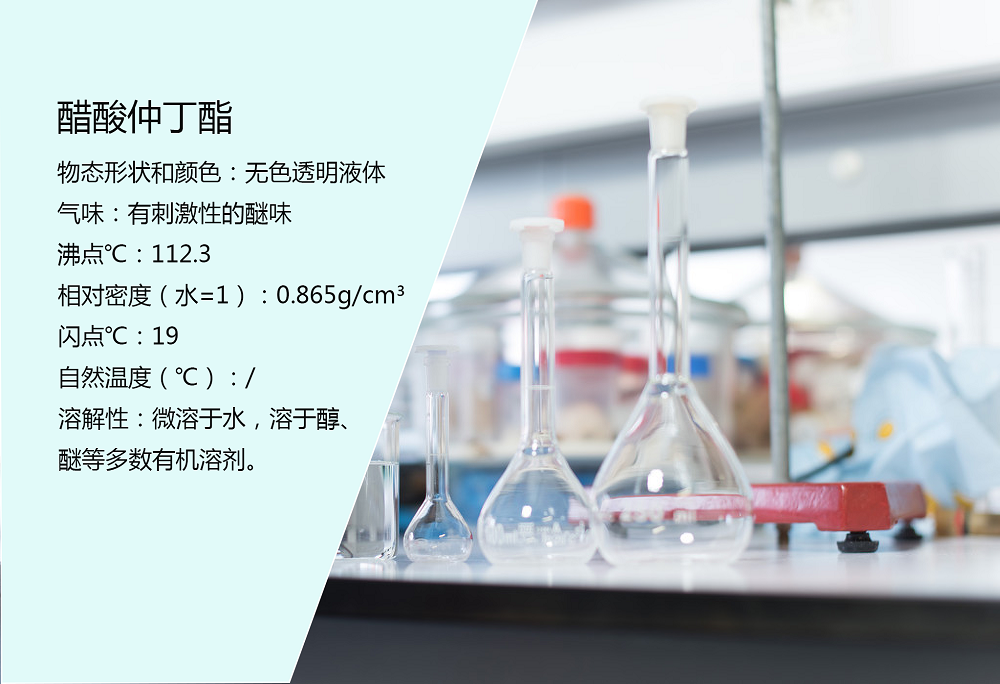 醋酸仲丁酯,即乙酸仲丁酯,也称醋酸另丁酯,为无色、易燃、具有果实味的液体,可溶解多种树脂及有机物,是醋酸丁酯的四种同分异构体之一,它与其它异构体的性能在大多数情况下都相似,其作溶剂最大的区别在于其沸点较常用的醋酸正丁酯和醋酸异丁酯低,蒸发速度较快。 醋酸仲丁酯可以与任意比例的 醋酸丁酯/醋酸混丁酯 混溶和混用。
